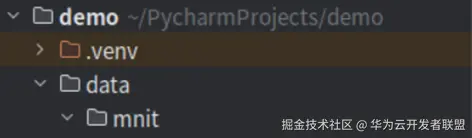 在同一项目目录下创建文件夹data,在data目录下创建mnist目录。