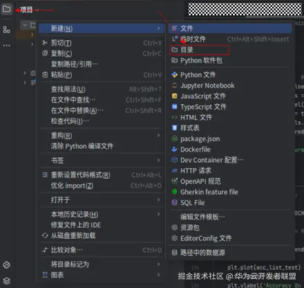 打开PyCharm,单击左上角图标在弹出的菜单中选择“新建>目录”。