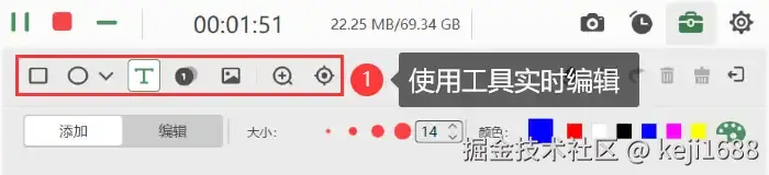 步骤3:在进行录制时,如果想要进行实时编辑或绘制,我们可以使用工具箱里的工具对视频进行添加文字、标注、放大、追踪等操作。