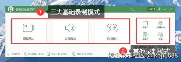 步骤1:在您的电脑上打开软件您将看到一个简洁的页面,在此页面根据您的录制需求选择合适的录制模式。