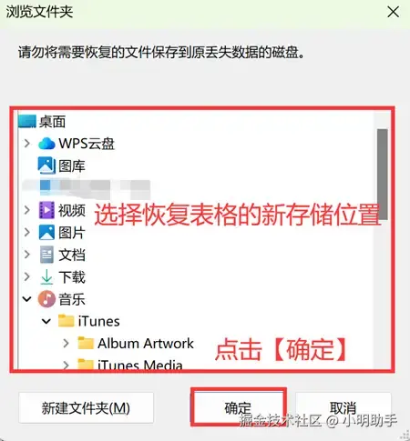 步骤3: 点击【导出】后,选择恢复表格的存放位置。