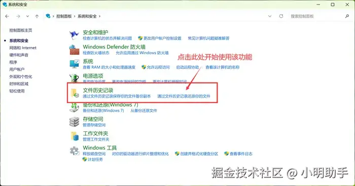 在Windows搜索栏中搜索【控制面板】,然后点击。进入控制面板主页面后,点击【文件历史记录】。再点击【还原个人文件】。选择你需要的已删除文件,最后点击【还原】。