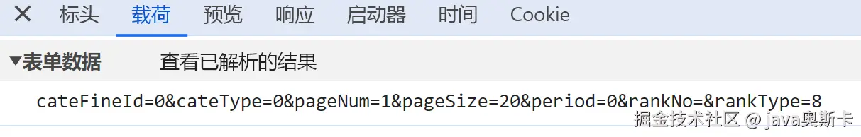 在页面加载过程中我们能看到加载的接口有列表信息,我们看到是POST请求,那么在载荷上肯定是有参数的,我们将参数添加上再使用post访问即可访问。