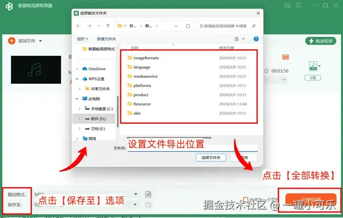 步骤3:返回格式转换界面,点击【保存至】选项,设置文件导出位置,然后点击【全部转换】。