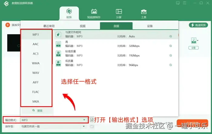 当然,小编推荐使用数据 蛙视频转换器,因为该应用可选择转换的格式较多,并且还有无损转换功能,可以在一定程度上保护原音频的音质。还需要注意的是,如果MP3文件本身已经损坏,就无法转换文件格式咯。