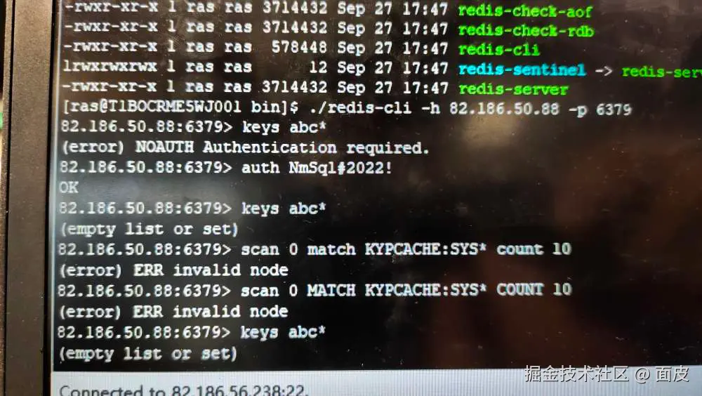 定位问题代码,发现该处使用了scan 命令(scan 0 match KYPCACHE:SYS:DICT* count 100) 来查询出符合模式匹配的所有key