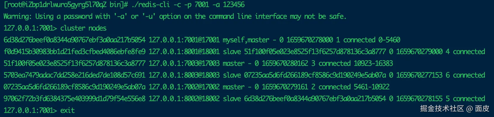 redis-cli -c -p 30001 -a 123456