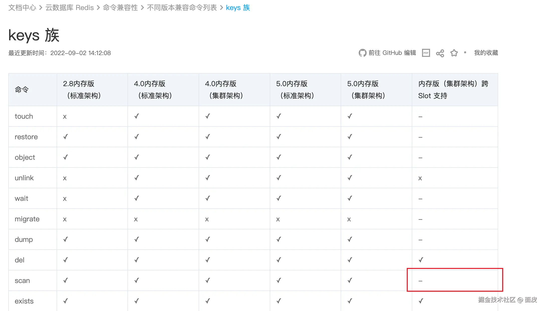 查阅credis文档发现,环境部署的CRedis版本不支持scan命令: