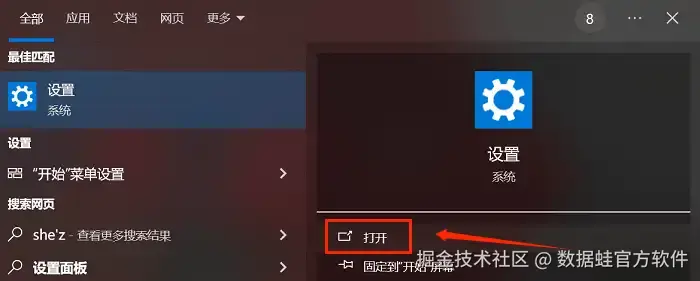 步骤1: 笔记本电脑的摄像头在哪里打开?首先,按下 【Win+S】 组合键,在搜索栏中输入 【设置】 ,然后点击进入。