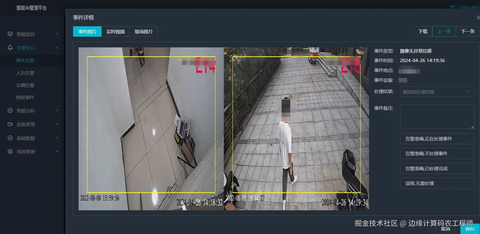 为了确保监控系统的有效性,及时检测摄像头的位移异常至关重要。异常位移识别不仅可以提高监控系统的可靠性,及时发现问题并进行修复,还能为后续的视频分析和数据挖掘提供可靠的数据基础。通过集成AI算法,视频分析网关能够实时监测摄像头状态,自动报警,提高工作效率。