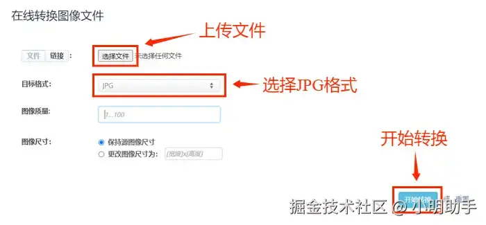 第二步: 点击【选择文件】按钮,上传需要转换的图像文件。