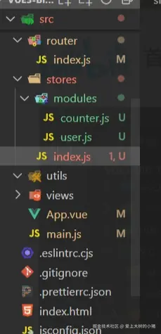 涉及到了pinia单独拿出来放在store项目下的index.js文件夹,通常我们会在store下面创一个module文件,专门放那些库,方便在App.vue中导入写一大串,我们将index.js文件当成整个module文件夹的出口,然后在这个index.js文件夹中类似(export * from './modules/user'//接收user模块所有的按需导出)