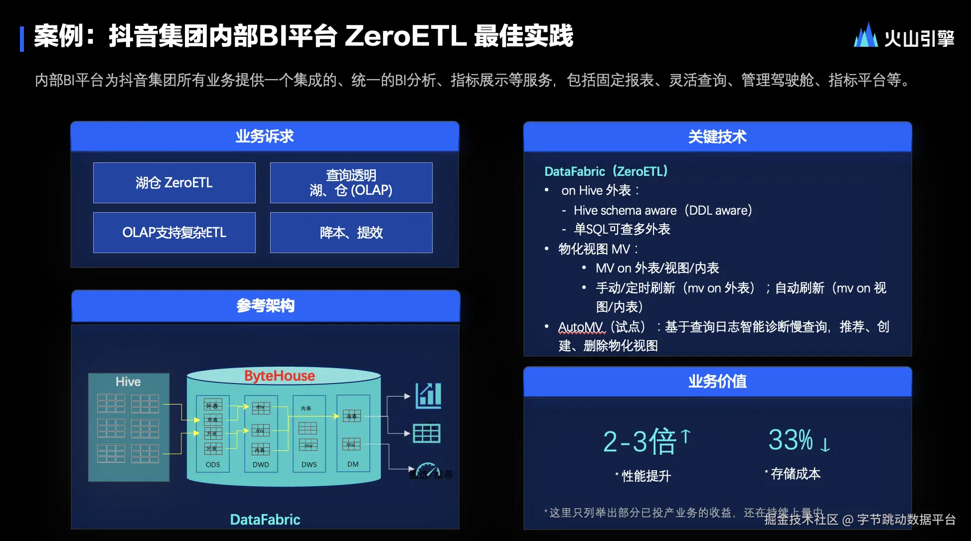 以上就是关于抖音集团内部 BI 平台 Zero ETL 实战应用的一些阶段性产出和初步成果。