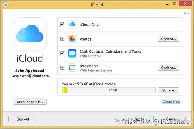 - 在您的 PC 上安装并运行适用于 Windows 的 iCloud,然后使用您的 Apple 登录凭据登录。