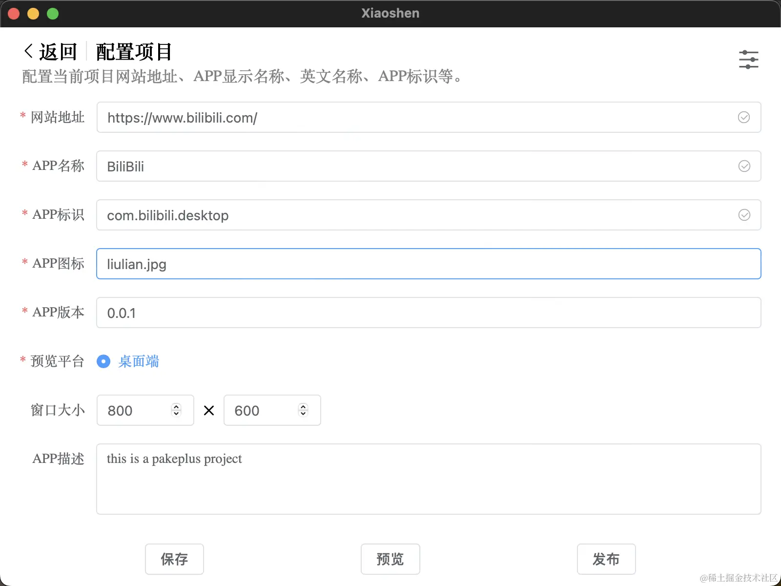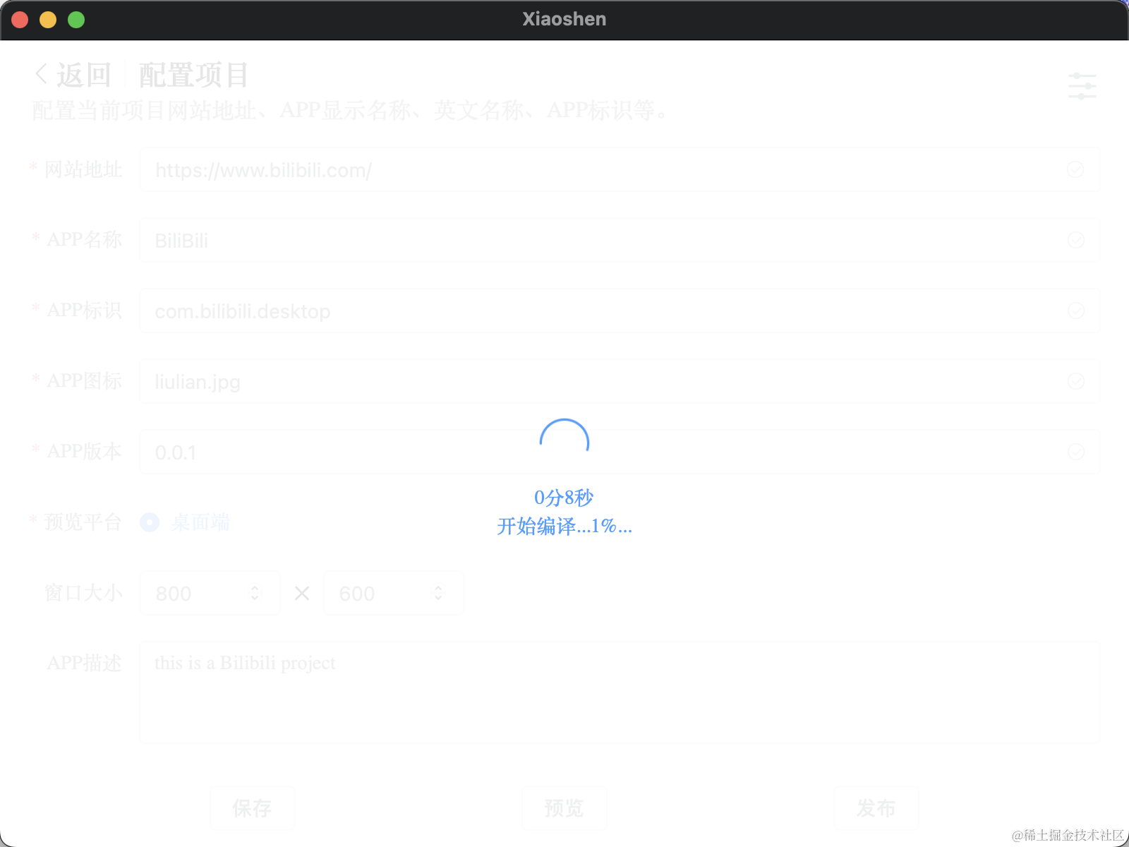 项目配置好之后,可以点击预览,会弹出一个窗口展示你程序的最终效果:如果可以正常打开,说明没有问题,也可以做一些窗口大小的配置,让页面更友好。