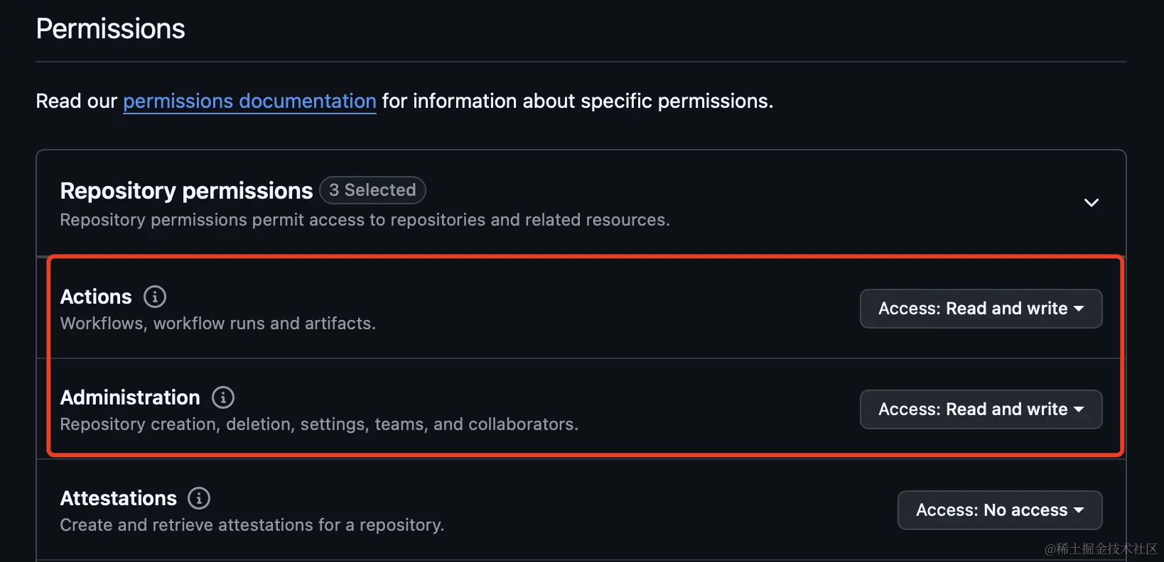 配置权限:赋予红框标注的权限,Access选择: Read and write