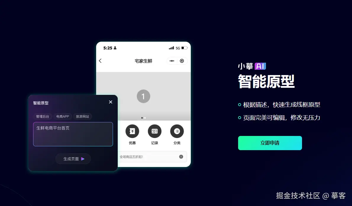 AI辅助产品设计的核心在于产品经理和设计师可以利用AI大大提升工作效率,比如小摹AI(官网:www.mockplus.cn/ai)等智能原型工具,产品经理可以根据描述自动生成可编辑的线框原型,还能生成图片、文本、翻译等内容,直接为产品设计过程提效10倍。
