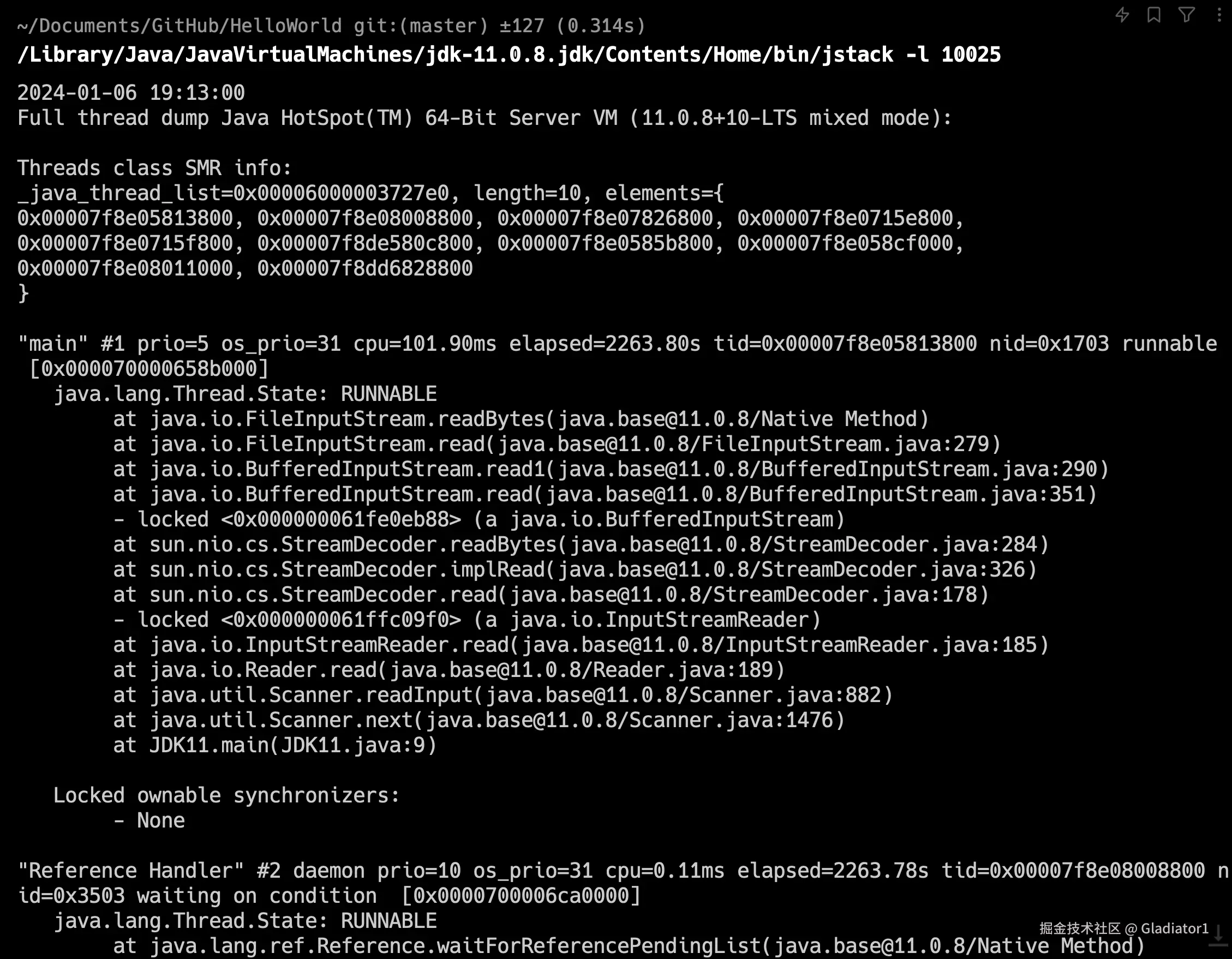 如下 jstack -l 10025 会输出进程 10025 的线程堆栈信息,包括锁信息。