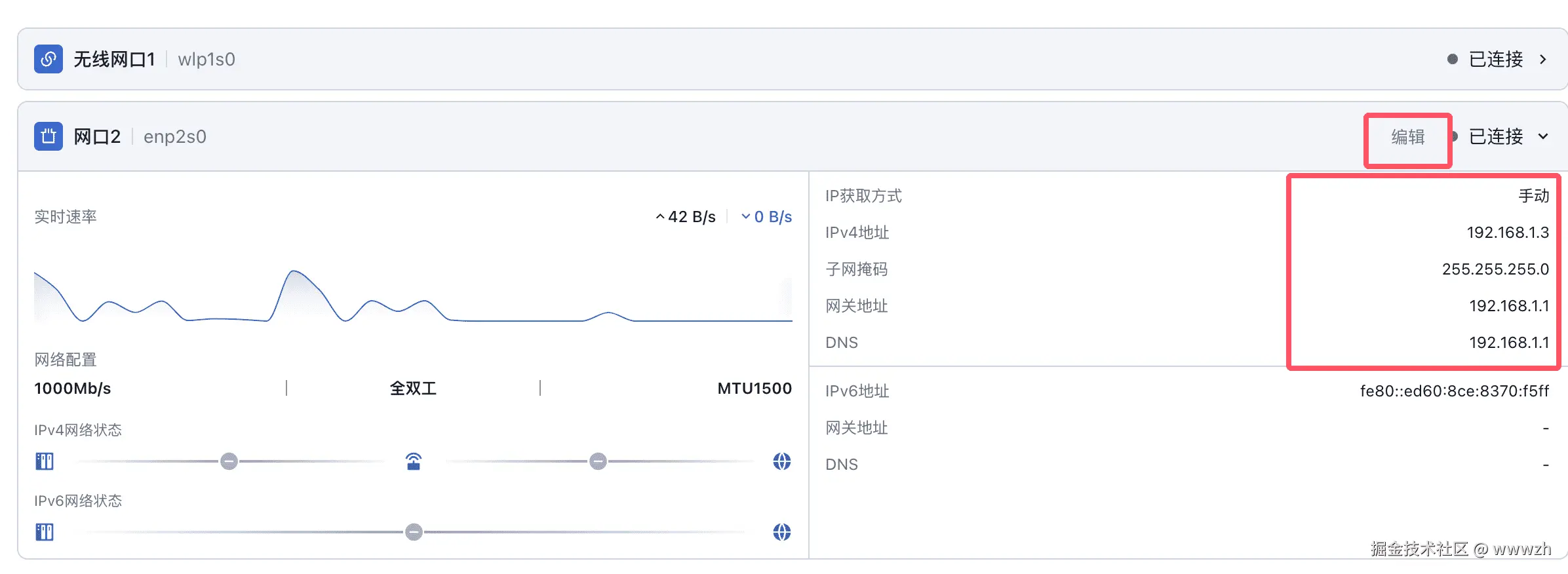 安装好了之后,理论上自动显示网口2,但IP什么的都是空的,需要点击编辑,然后按照下面的填一下。