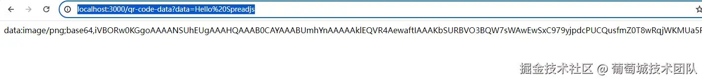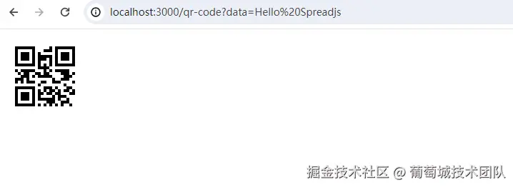 - 打开浏览器,在地址栏中输入http://localhost:3000/qr-code?data=Hello%20Spreadjs