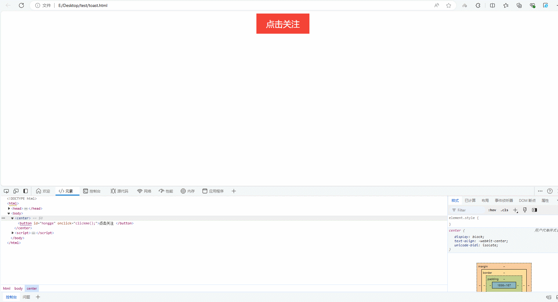 宏哥还是按之前toast的消息那个demo来演示,这里就不写demo的HTML代码,不知道的可以看宏哥之前的文章:传送门