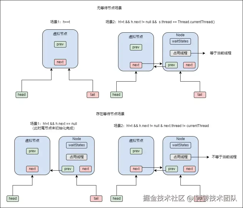 //2.头结点不为null并且等待状态不是初始化状态,因为处于初始化状态的节点可能仍未初始化完成