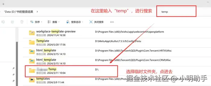 如果是觉得系统清理垃圾文件后,依旧想为D盘清理出更多的空间,D盘满了哪些文件可删除?我们还可以选择去自行找到D盘里面的“临时文件夹”,根据实际情况去选择无用的临时文件进行清理。D盘满了怎么清理?找到D盘的临时文件夹的方法如下: