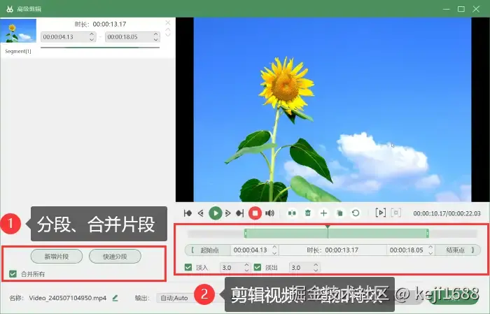 步骤3:录制完成后,进入软件自带的 【高级剪辑】 中剪辑视频,并可以分段、合并视频等后期操作。