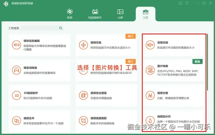 • 步骤1:打开并点击数据 蛙视频转换器,点击【工具箱】,选择【图片转换】工具。