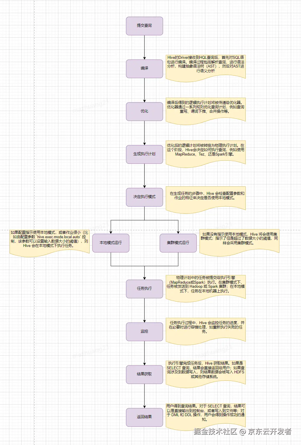 1.查询编译:Hive 将 HiveQL 查询编译成一个逻辑执行计划,这个计划描述了如何执行查询。此阶段包括语法分析、语义分析、生成逻辑计划、逻辑计划优化和生成物理计划(通常是 MapReduce 作业)。
