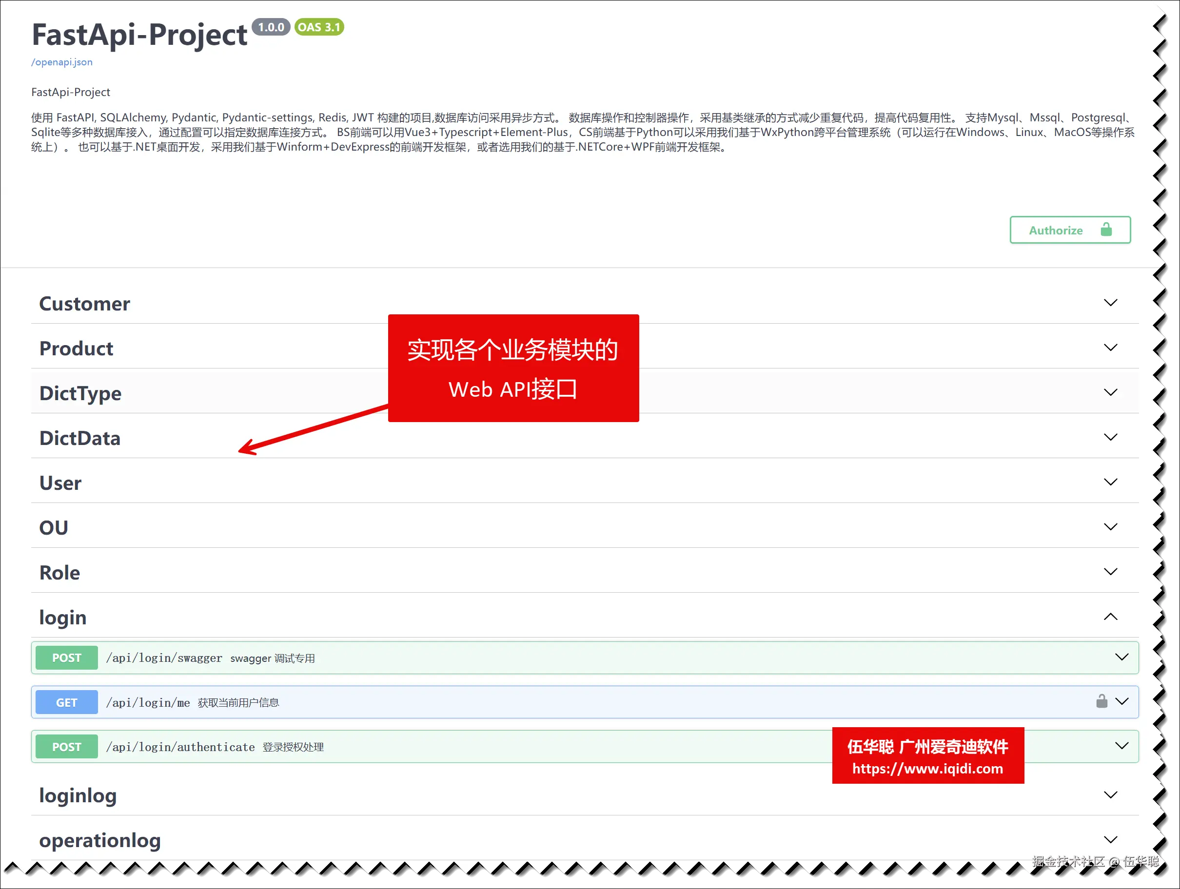 Python + FastAPI项目是一个Web API的项目,为各个前端提供接口的后端项目,其界面自动整合Swagger的文档界面,如下所示。