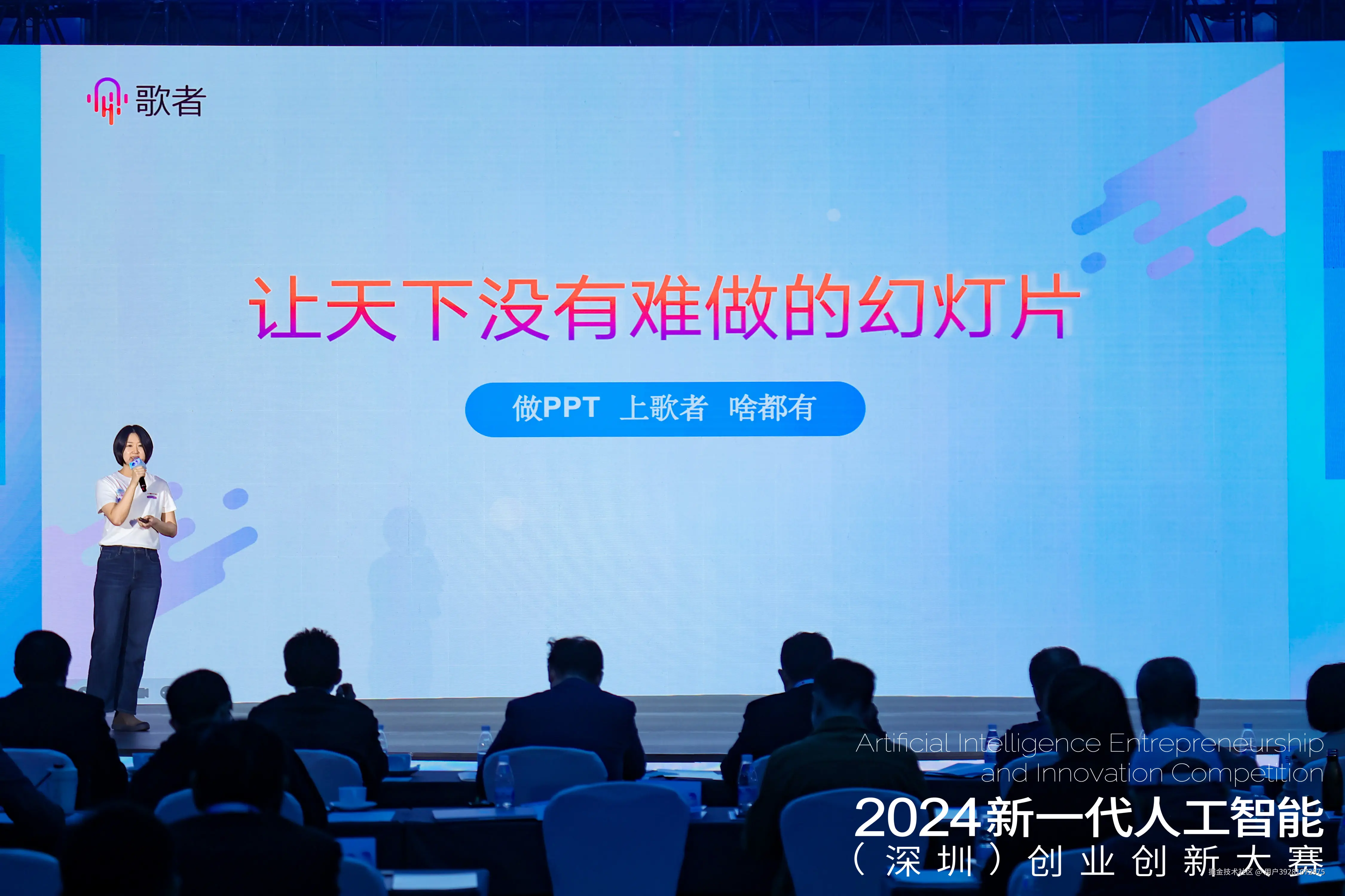 在本次大赛总决赛现场,彩漩科技联合创始人李雪岩代表公司出席,并向评审团与参会者详细展示了歌者 PPT 的核心功能和实际应用场景。通过教学、商务演示等具体案例,生动阐述了歌者 PPT 如何通过 AI 赋能提升效率与创意,获得了与会嘉宾的高度关注。