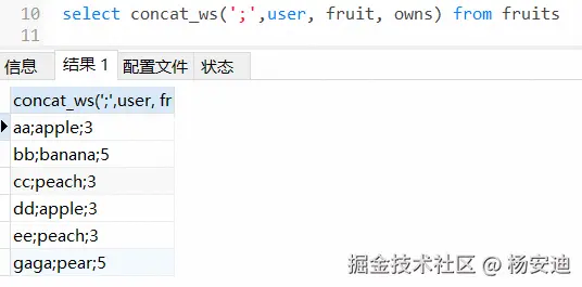 group_concat( [distinct] 要连接的字段 [order by 排序字段 asc/desc ] [separator '分隔符'] )