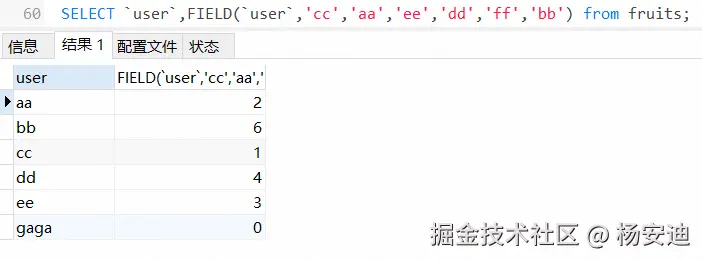 FIELD函数将会返回value在列表中的位置,如果找不到,则返回0。