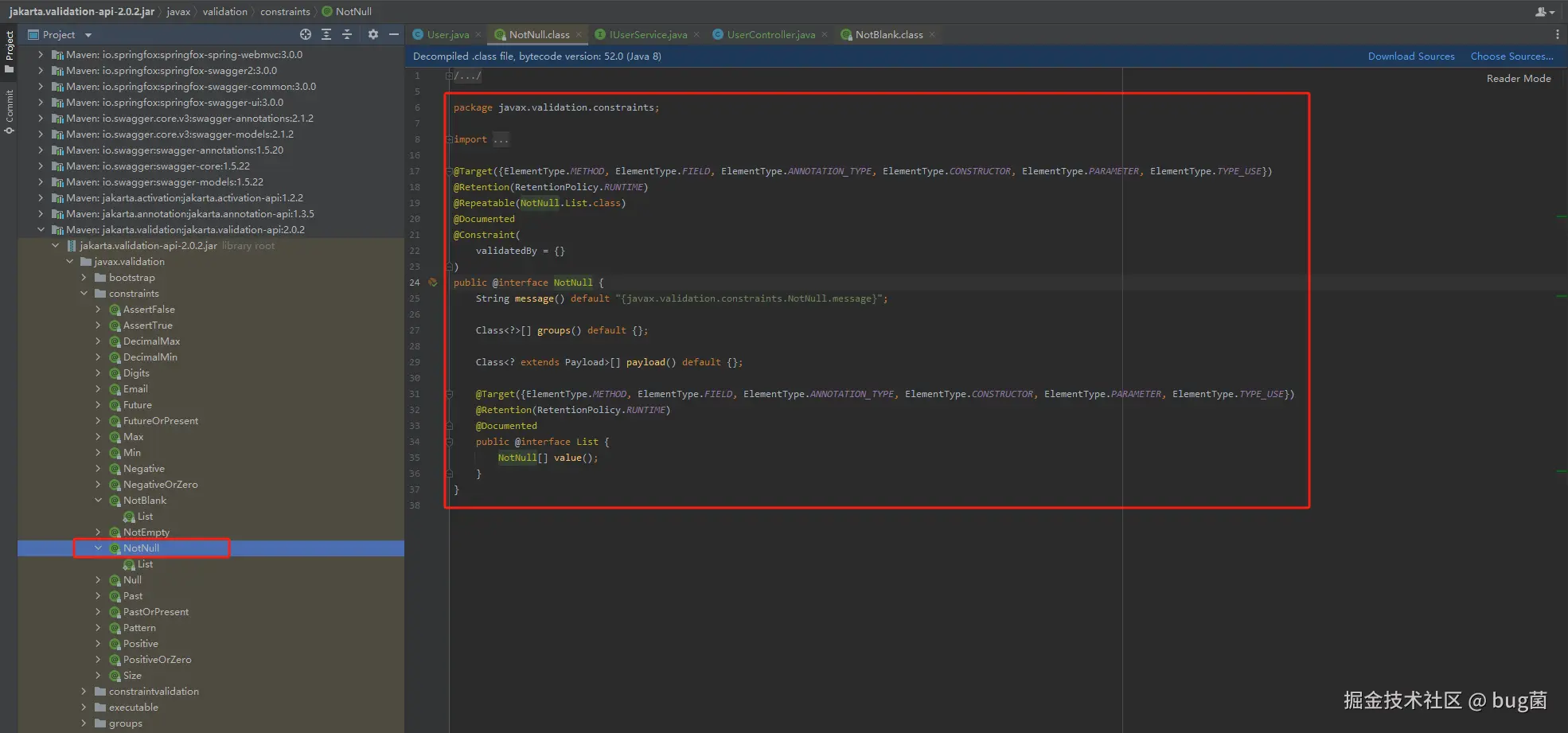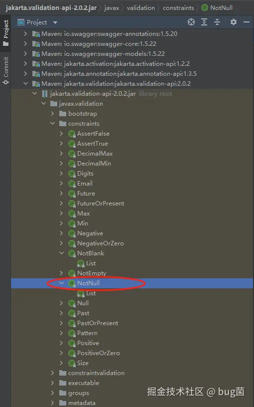 @NotNull 注解属于 javax.validation.constraints 包,可从源码中进行查看,一般使用都需要导入import javax.validation.constraints.*;。