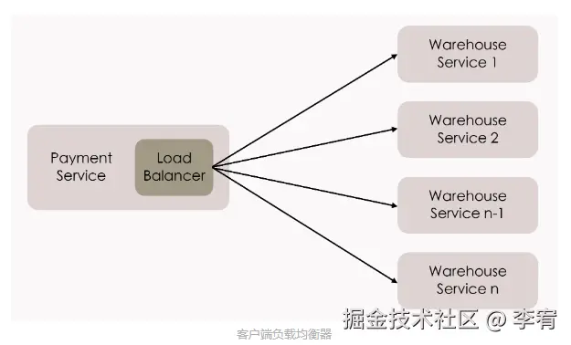 - **客户端负载均衡器:**部署在每个服务实例前端,与服务实例共存于同一进程内。