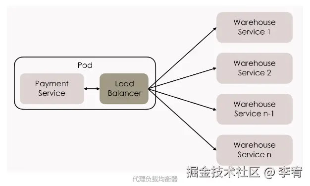 - **定义:**将客户端负载均衡器提取到边车代理中实现。