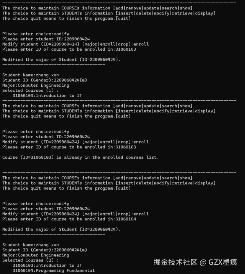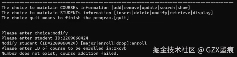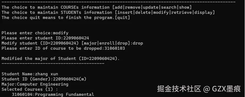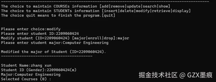 else if (command == "modify") Modify(students_list, courses_list); // 修改学生信息