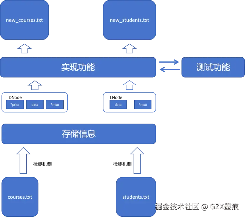 程序首先需要对文件进行读操作,对于courses.txt和students.txt的设计思路都是通过检测机制来存储相应内容。即: