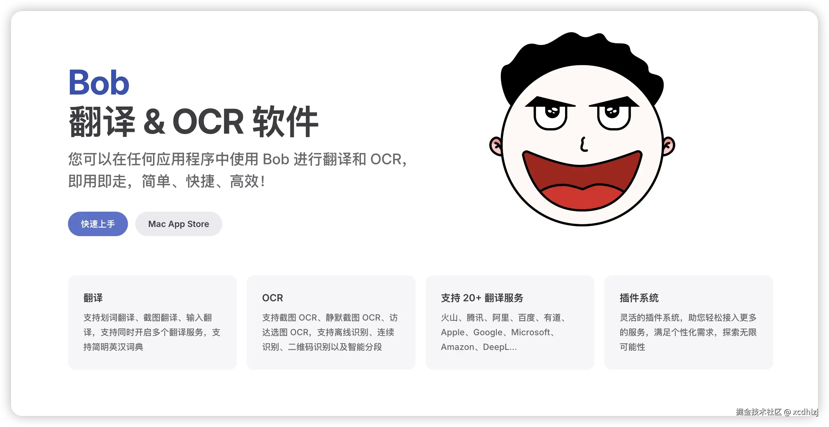 Bob 是一款 macOS 平台的翻译和 OCR 软件,您可以在任何应用程序中使用 Bob 进行翻译和 OCR,即用即走,简单、快捷、高效!