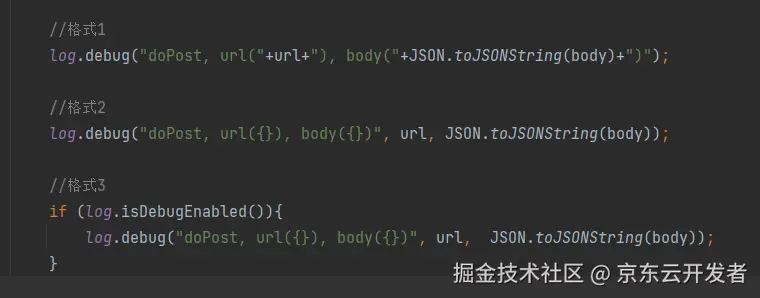 如上3种写法,我相信大家或多或少都在项目代码中看到过,那么他们之前有区别呢,会对性能造成什么影响? 如果此时关闭 DEBUG 日志级别,差异就出现了