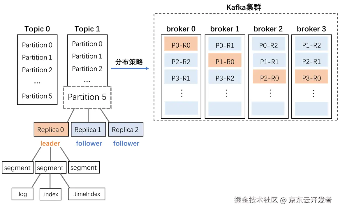 Kafka的message是按topic分类存储的,topic中的数据又是按照一个一个的partition即分区存储到不同broker节点。每个partition对应了操作系统上的一个文件夹,partition实际上又是按照segment分段存储的。符合分布式系统分区分桶的设计思想。