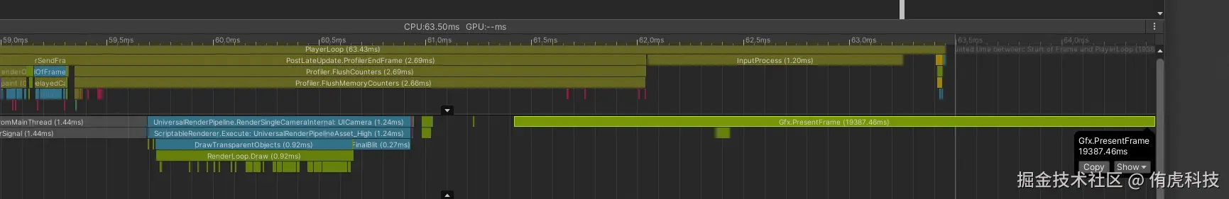 Q:部分安卓机型上,某个东西显示出来的时候,Gfx.PresentFrame耗时非常高。