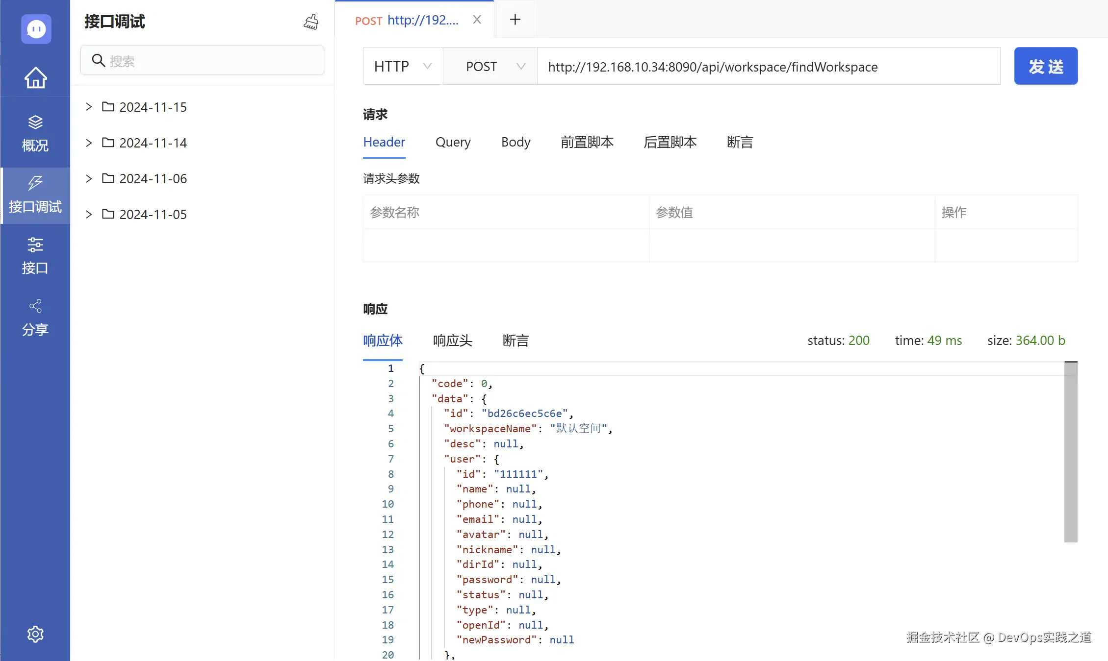 Postin 提供快速便捷的接口调试功能,与接口管理中的接口区别在于需要手动输入参数,用于临时测试不需要管理的接口。支持 HTTP 和 WebSocket 协议,帮助开发者验证 API 接口的功能和行为,确保接口按预期工作。