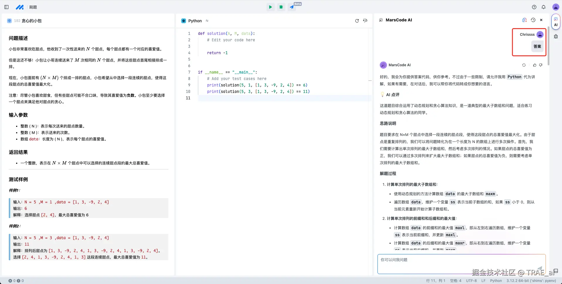 1️⃣ 标准题解上线:向 AI 回复“答案”就能获得完整解法和答案代码,已覆盖 300 道题,还在不断上新中!