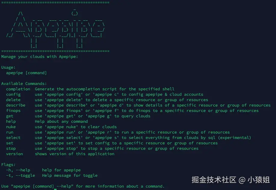 Apepipe CLI 还集成了一些效能工具,比如当你不再需要使用这个云账号时,使用 nuke 这个工具可以把账号里的资源一键清理干净。