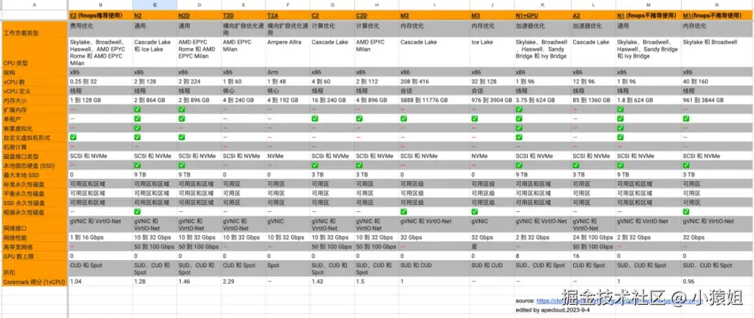 11.3 整理一份 GCP 实例规格,并标注了 FinOps 推荐的机型