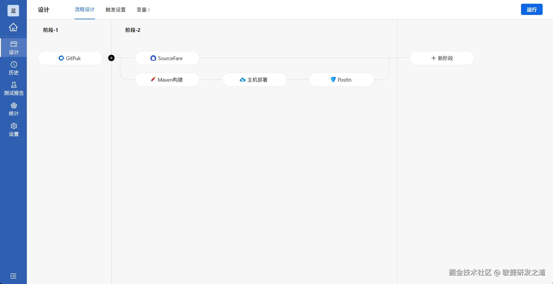 流水线以可视化设计方式,降低学习成本,简化了流水线配置流程。