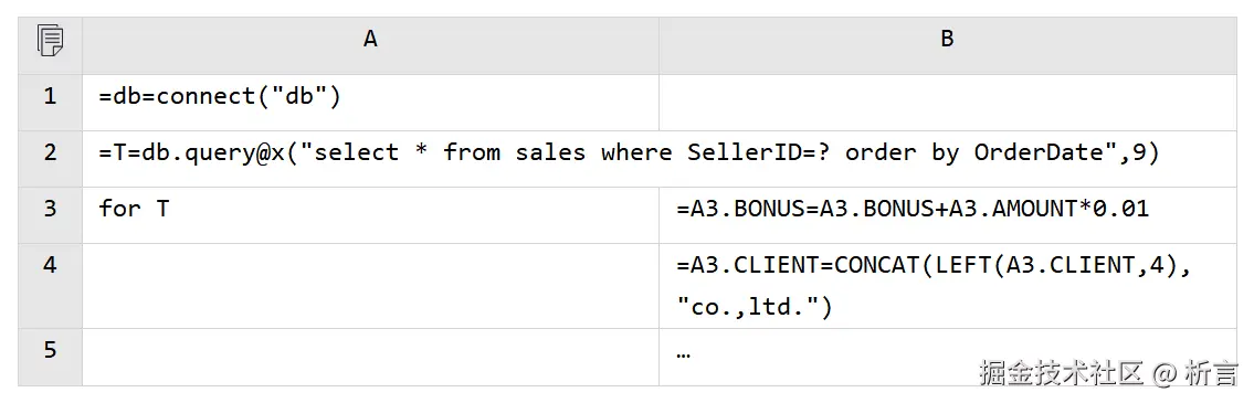 上述代码之外,SPL 还有更多针对结构化数据的流程处理功能,可进一步提高开发效率,比如:每轮循环取一批而不是一条记录;某字段值变化时循环一轮。