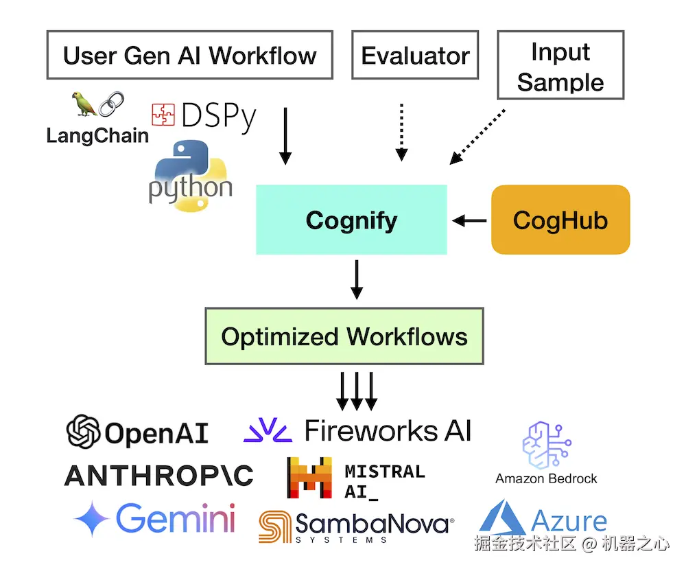 近日,UCSD 张怡颖教授的 GenseeAI 团队推出了首款可自动提升 AI 工作流生成质量并降低生成成本的工具 Cognify。Cognify 可以自动优化 AI 工作流,支持 LangChain、DSPy、Python 等语言框架。Cognify 的核心思路是一种创新的分层工作流级优化方法。Cognify 可将生成式 AI 应用的生成质量提高多达 48%,并将执行成本降低多达 90%。Cognify 现已开源。